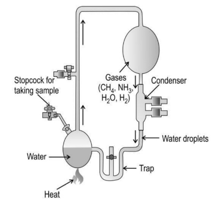 12. A group of students designed and executed an experiment similar to the Miller-Urey experiment, but missed a component. The experimental setup used by them is shown below.